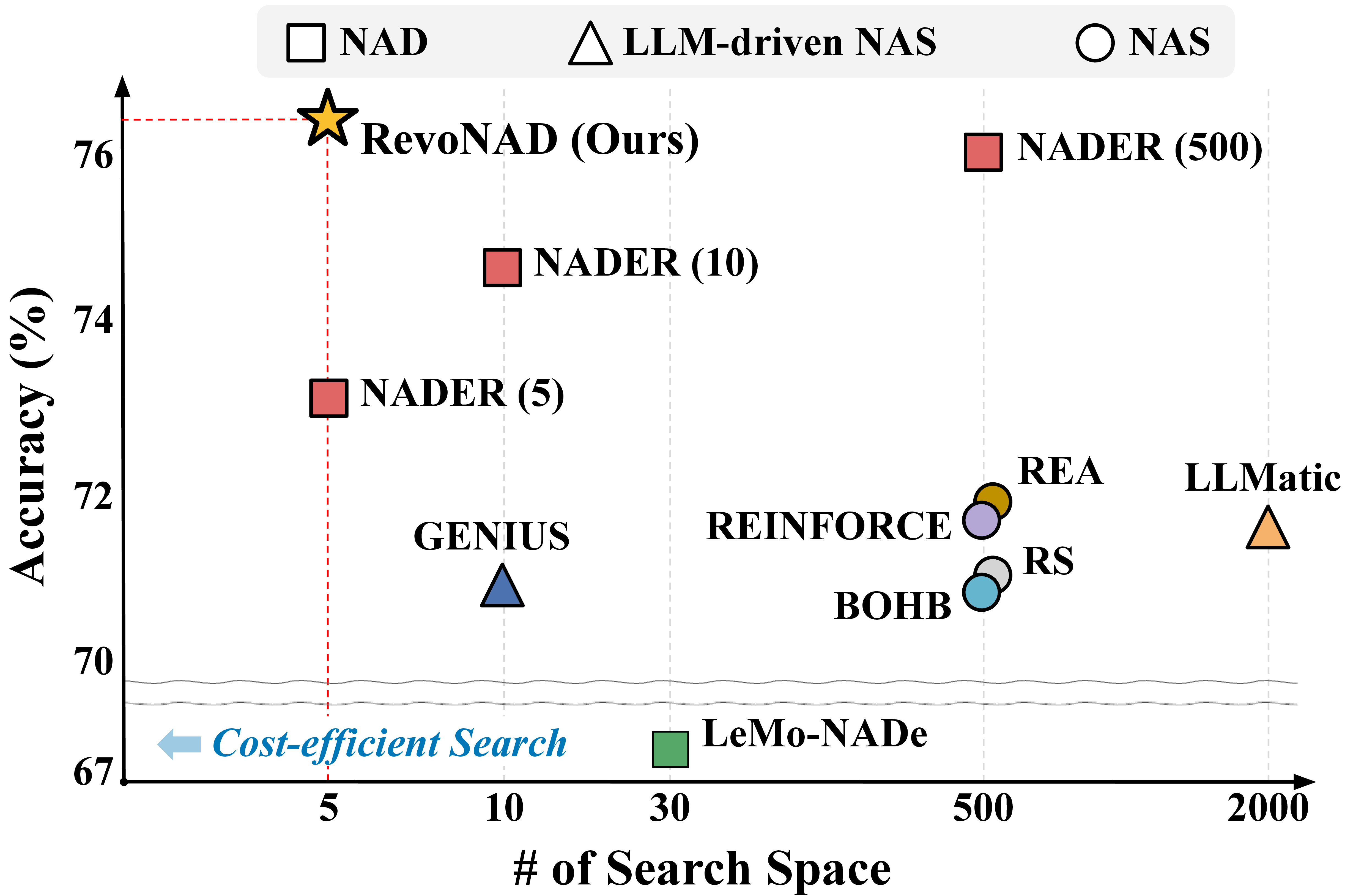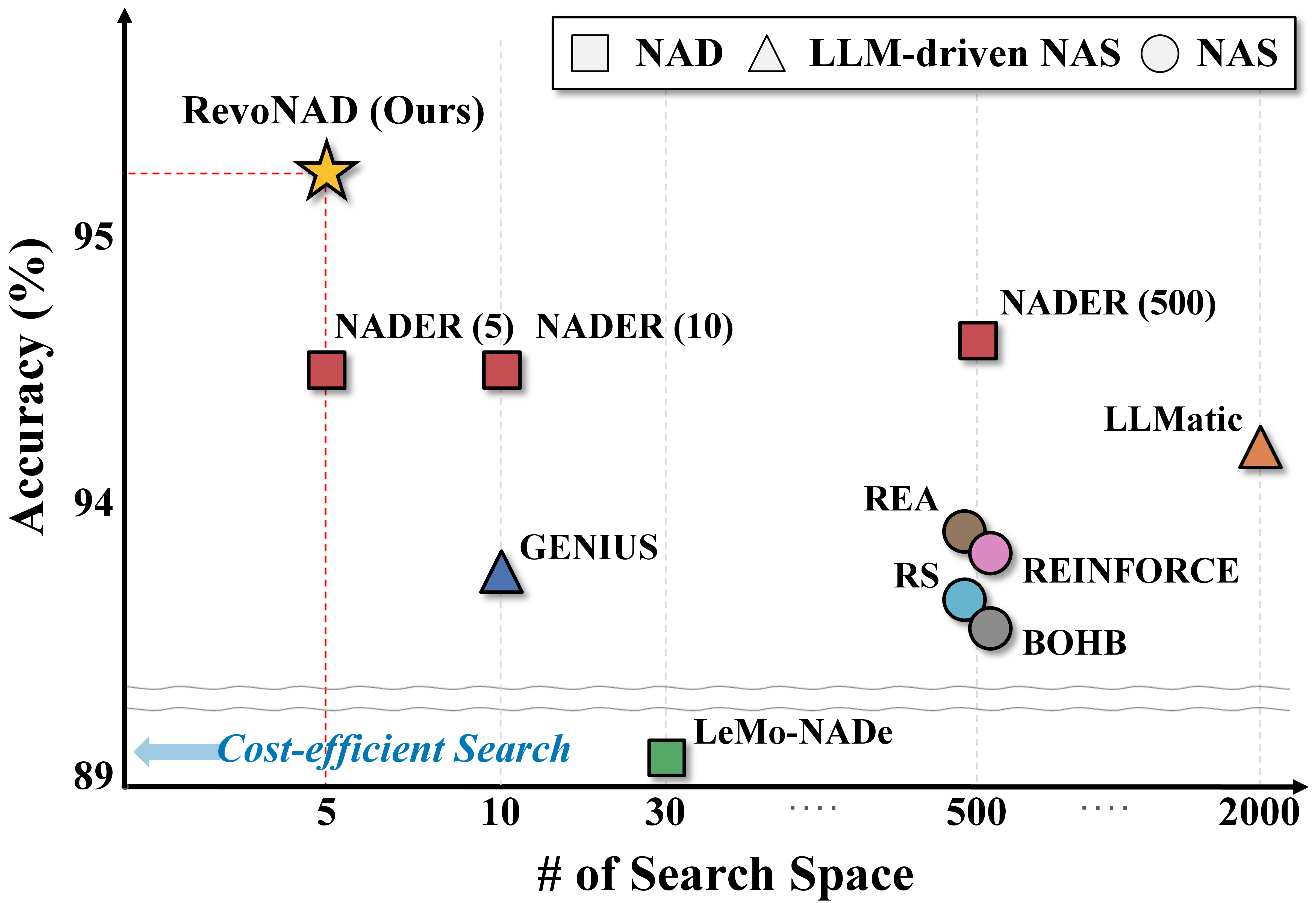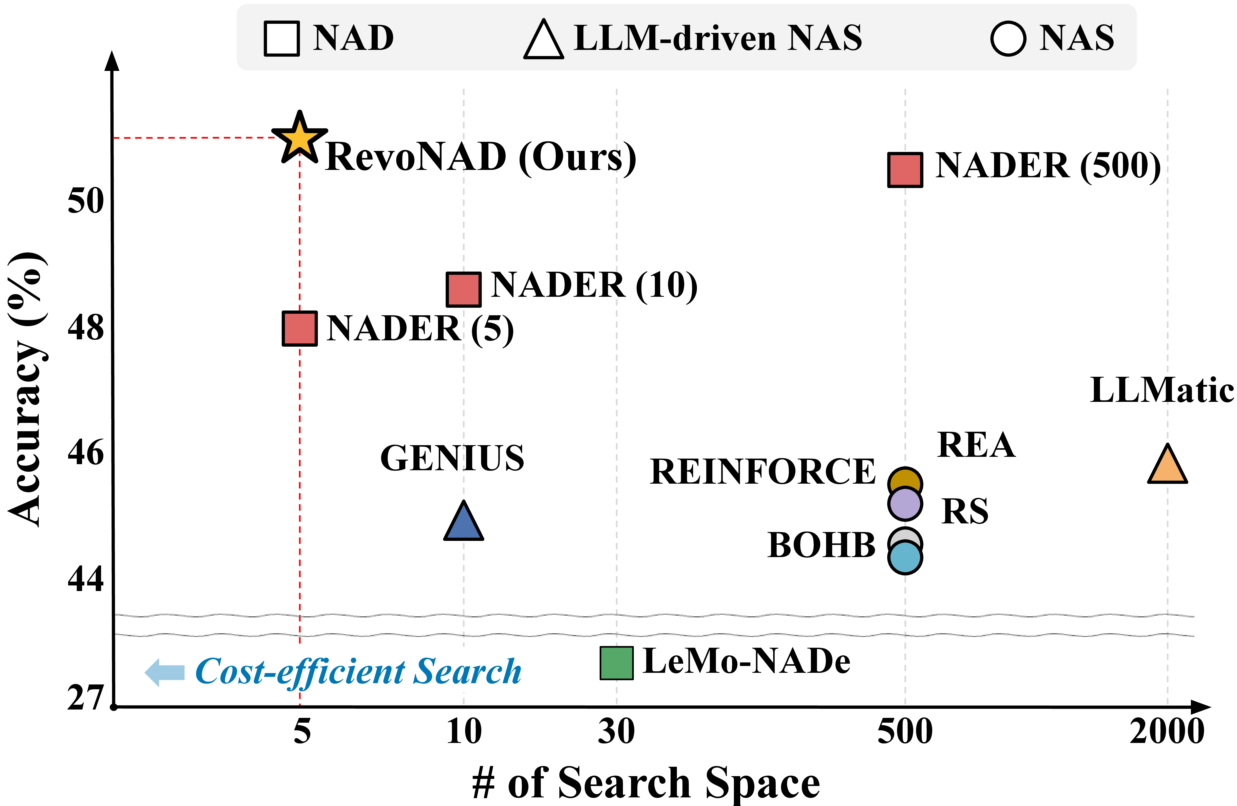 | RevoNAD (GPT4o) | 5 | 92.55±0.27 | 95.22±0.20 | 76.70±0.39 | 76.38±0.32 | 50.58±0.19 | 50.72±0.20 |